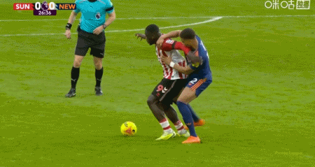 第34分钟,穆杰莱铲球时膝盖顶到丹-伯恩胸口,裁判出示黄牌对其警告